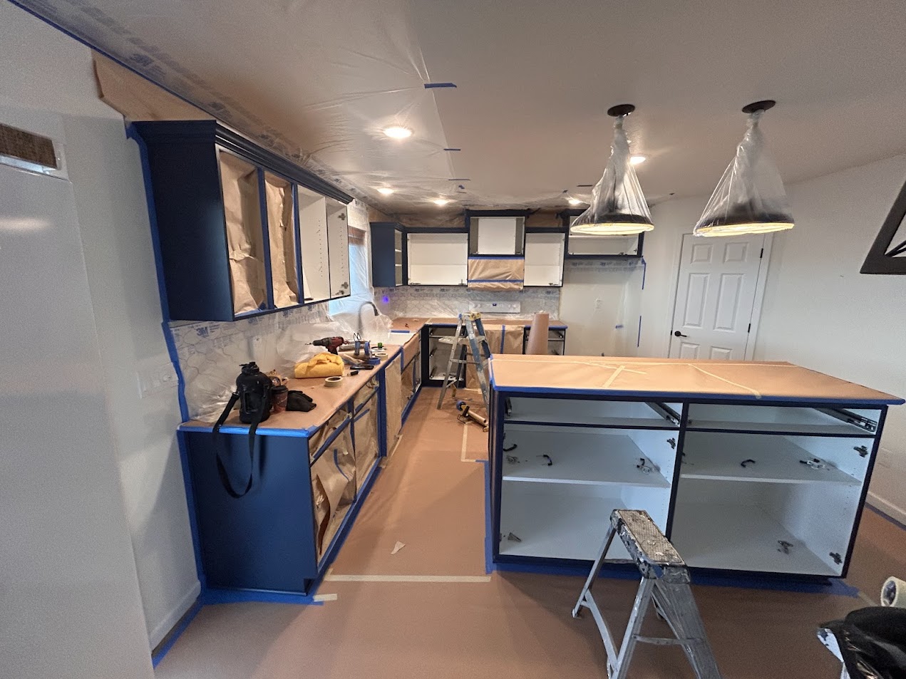 We do our best to accommodate our clients in every way possible, and this is one of those cases. We like to do cabinets on site whenever possible, to keep costs down and the project efficient, but when that is not a possibility we can take the doors and drawers back to our shop. This keeps it much cleaner and less invasive.