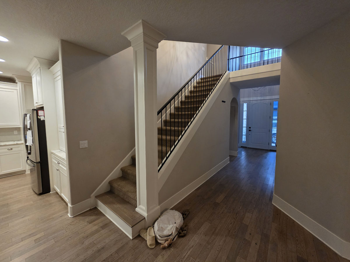 THIS is how you take advantage of us being on site! We were all set up to paint the kitchen cabinets, and while we were there, made use of the timing to include the rest of the trim throughout the main areas. We also did the walls throughout these areas, ensuring this home is ready for whatever is thrown at it!