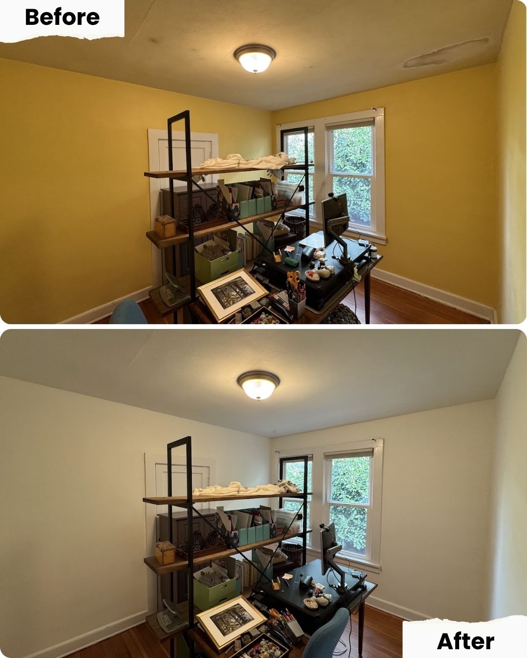 Another great example for not needing to change the world in order to create a new feeling space. We came in, prepped and painted walls & ceilings, and within a few days, updated and brightened this client’s home.